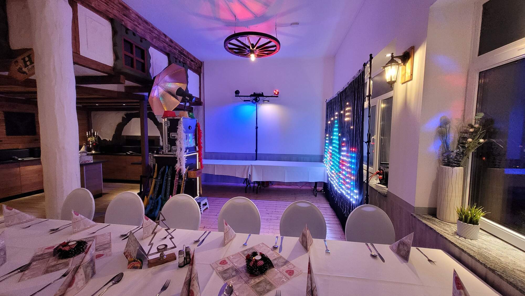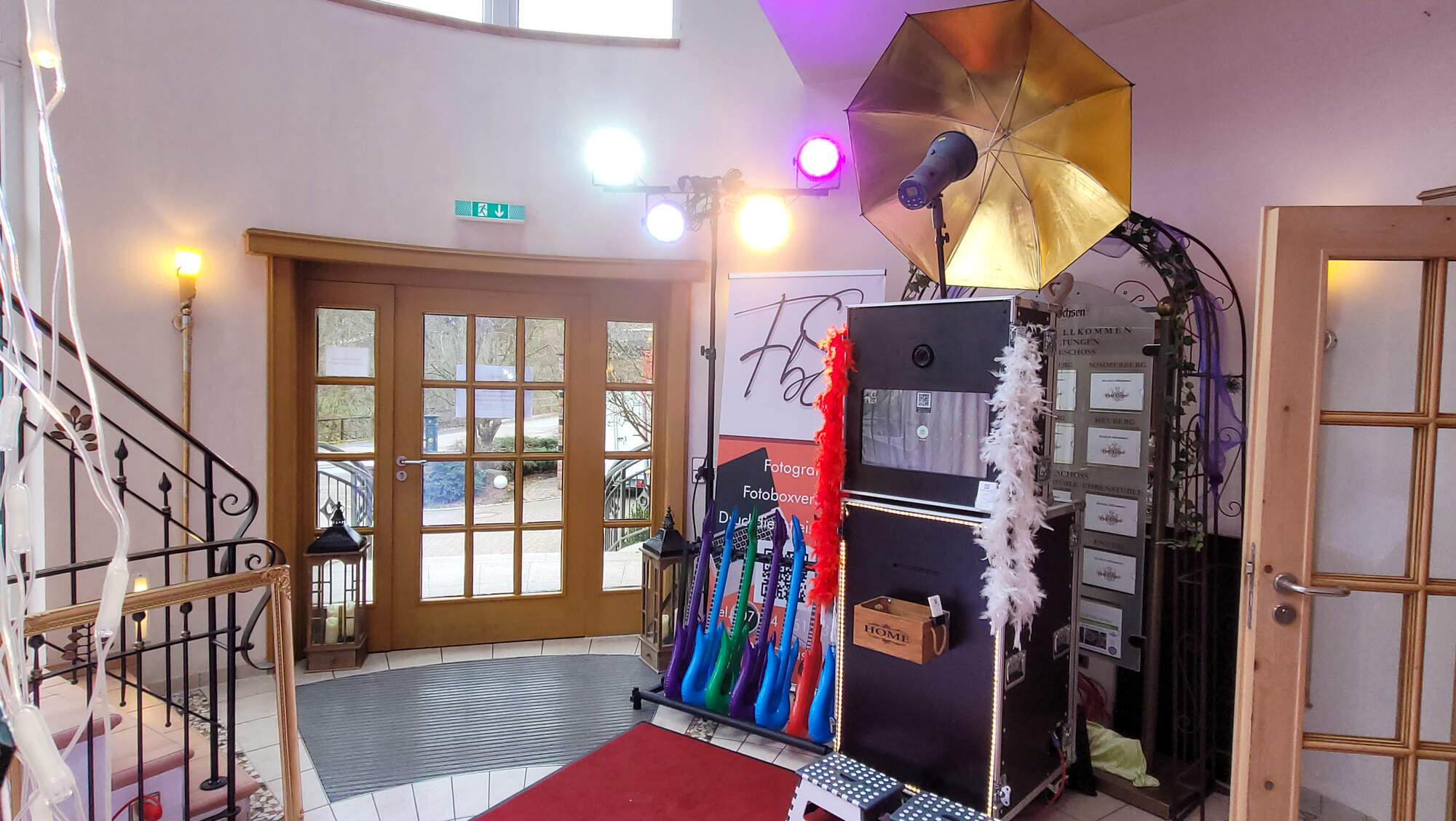 • Echte Profi-Beleuchtung: Als erfahrener Fotograf nutze ich externe Studioblitze und Softschirme. Das Ergebnis: Perfekt ausgeleuchtete Gäste ohne „rote Augen“ oder harte Schatten – wie im Fotostudio.