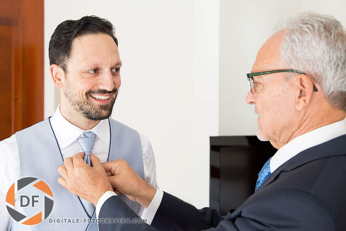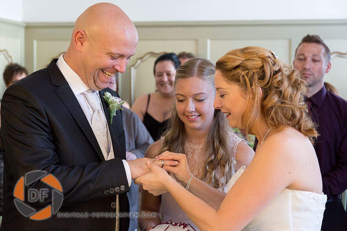 Kontext und Details: Nicht nur das Brautpaar zählt. Ein gutes Foto fängt auch Details ein – die Hände beim Ringtausch, die Freudentränen der Eltern, das flatternde Kleid im Wind.