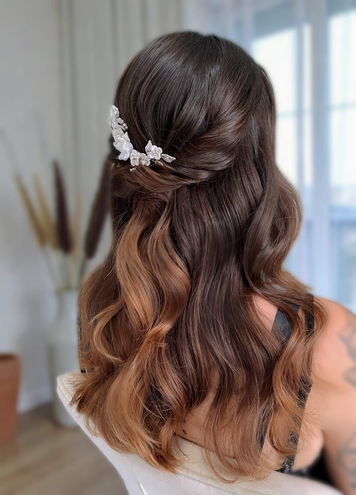 Mein Fokus liegt auf trendgerechten, zeitlosen Brautfrisuren und einem typgerechten Make-up, das deine natürliche Schönheit unterstreicht – nicht verändert. Ob elegante Wellen, moderne Half-up-Frisuren, klassische Hochsteckfrisuren oder ein natürlicher Bridal Glow: Jedes Styling wird individuell auf dich, deine Persönlichkeit, dein Kleid und das Gesamtkonzept deiner Hochzeit abgestimmt.